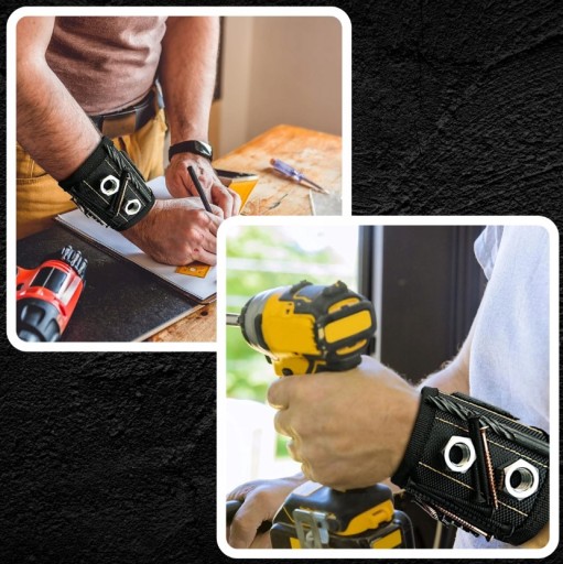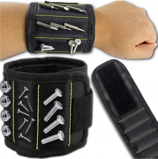 Oryginalna i uniwersalna opaska magnetyczna na nadgarstek z 15 mocnymi magnesami, służąca do przyczepiania narzędzi i akcesoriów, takich jak klucze, wiertła, śruby, nakrętki itp. Ułatwia i przyspiesza pracę majsterkowicza, gdyż pozwala mu uwolnić ręce, a jednocześnie trzymać wszystko, co potrzebuje w pobliżu. Może być również używana do innych prac, takich jak szycie itp.