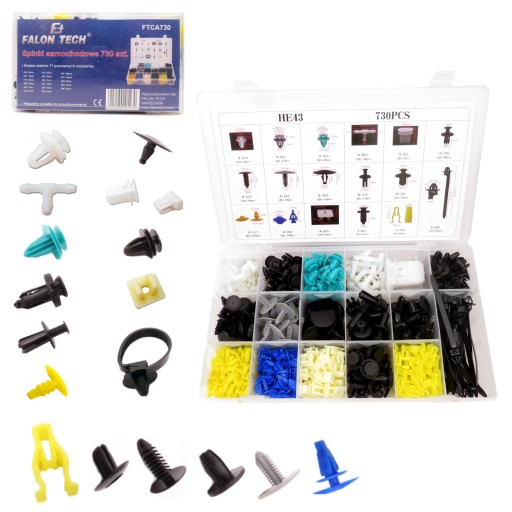 Niezwykle praktyczny zestaw spinek i klipsów. Dzięki specjalnie dobranym elementom różnej wielkości z powodzeniem wykorzystasz je do mocowania m.in. osłon, nadkoli, elementów deski rozdzielczej, czy tapicerki.