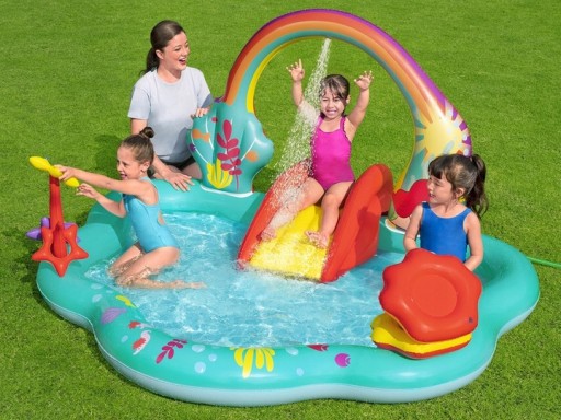 Bestway wodny plac zabaw Disney Mała Syrenka to propozycja firmy Bestway na letnie szaleństwa dla najmłodszych. Ciekawa kolorowa grafika z motywem z Bajki Disney Mała Syrenka z pewnością spodoba się każdej małej księżniczce i jej przyjaciółkom. Ten dmuchany basenik zapewni mnóstwo radosnej zabawy i niezapomnianych wrażeń. Dodatkowo posiada szereg fajnych atrakcji, dzięki czemu zabawa w nim szybko się nie znudzi.