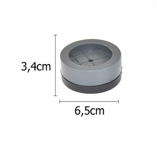 Podkładki antywibracyjne pod nóżki pasują do pralki, zmywarki, suszarki i innych urządzeń. Wykonane z wytrzymałego materiału. Zapobiegają przemieszczaniu się urządzenia w czasie pracy oraz redukują hałas.