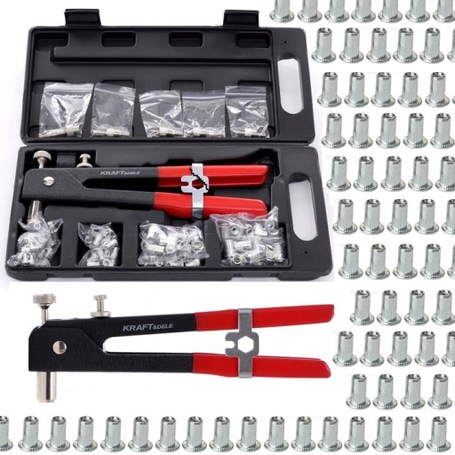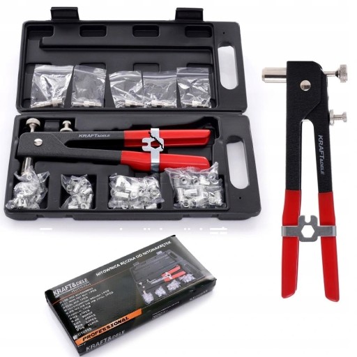 Profesjonalna nitownica ręczna model KD10555 polskiej marki KRAFT&DELE. Wykonana z najwyższej jakości materiałów, w tym stali oraz aluminium.