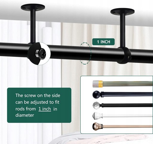 Zaprojektowane z myślą o wszechstronności – wsporniki do karniszy sufitowych 2,5 cm charakteryzują się prostym i nowoczesnym stylem, gładkim wyglądem i błyszczącym czarnym kolorem, skutecznie upiększą Twoją domową łazienkę, sypialnię, salon, kuchnię, biuro. Nie tylko jako uchwyty do montażu sufitowego do drążka okiennego, ale także dobrze pasują do prętów do szafy prysznicowej, drążków do zasłon działowych, karniszy do zasłon podłogowych.