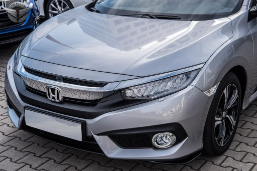 Stylizacyjne nakładki podkreślają kształt halogenów, czyniąc z nich prawdziwą ozdobę samochodu. Lustrzany połysk chromowanej powierzchni znakomicie komponuje się z innymi elementami wykończenia Hondy, podkreślając charakterystyczny, nowoczesny design modelu CIVIC. Nakładki wprowadzają akcent sportowej elegancji, dopełniając przyciągającą uwagę stylizację samochodu.