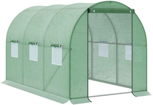 - szerokie, zamykane na zamki błyskawiczne drzwi zapewniają swobodne wejście do tunelu a 2 metry wysokości ułatwią wykonywanie prac i pozwalają na uprawę roślin pnących