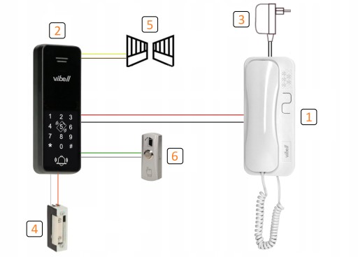 - Zasilanie panelu zewnętrznego oraz elektrozaczepu bez dodatkowego źródła zasilania, eliminuje konieczność prowadzenia dodatkowych przewodów.