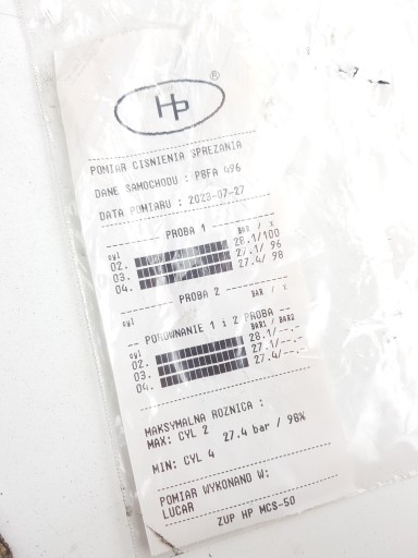 - NA OSTATNIM ZDJĘCIU PRZEDSTAWIAM WYNIKI Z POMIARU KOMPRESJI Na pierwszym cylindrze zapieczona świeca.