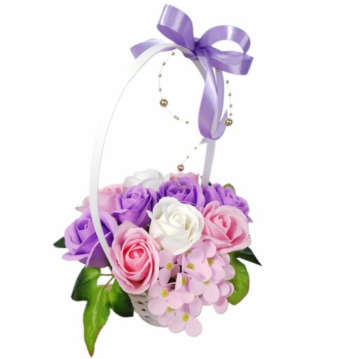 ❤️ Ozdobny kosz, bukiet z kwiatami mydlanymi - piękny prezent oraz delikatnie pachnąca dekoracja dla twojego wnętrza ❤️
