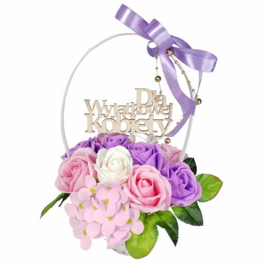 Bukiet kosz upominkowy róże mydlane kwiaty na prezent topper GRATIS