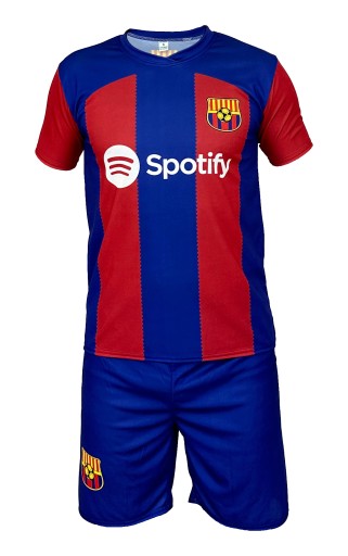 Strój piłkarski Barcelony z napisem LEWANDOWSKI w wersji domowej. Wykonany z wytrzymałej i dobrej jakościowo dzianiny. Materiał jest szybkoschnący, oddychający i przyjemny w dotyku.