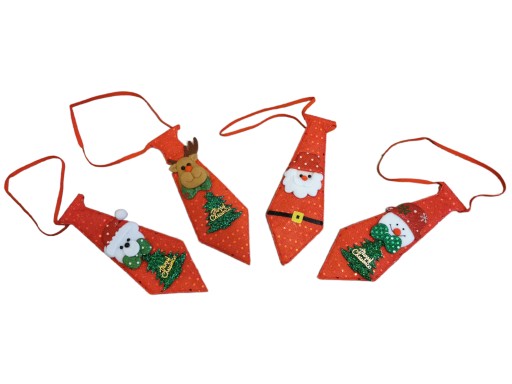 Wykonany z dobrej jakości materiałów, posiada świąteczne aplikacje takie jak Mikołaj, Renifer, Bałwan, drzewko itp. Dzięki zastosowaniu materiału zawierającego cekiny krawat bardzo ładnie się mieni w świetle.