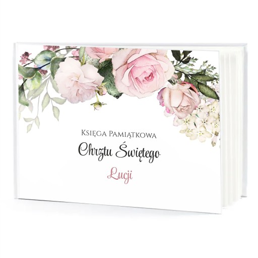 Księga na pamiątkowe wpisy z życzeniami od Waszych Gości. Wykonana w sztywnej, białej okładce, ozdobiona wklejką z kwiatowym motywem.