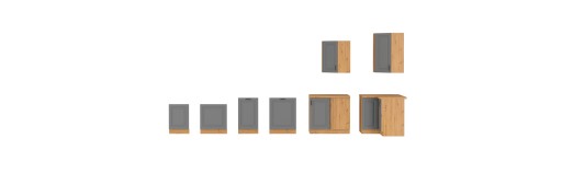 Aukcja dotyczy zestawu dziesięciu szafek STILO w kolorze Dustgrey/Dąb Artisan