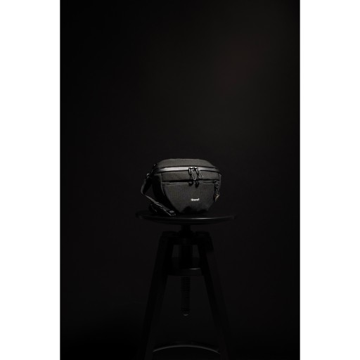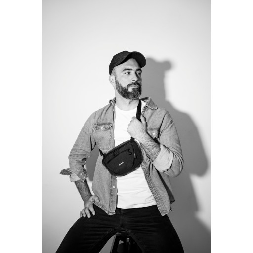 Posiada 4 kieszonki oraz regulowany pasek, dzięki któremu można nosić ją na biodrach i przewieszoną przez ramię.