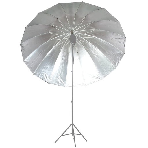 Wysokiej jakości srebrna parasolka odbijająca MITOYA Fiberglass o średnicy 185 cm. Niezbędny element wyposażenia każdego studia fotograficznego, umożliwiający odbicie i rozproszenie strumienia świetlnego na bardzo dużej powierzchni. Srebrna powierzchnia odbijająca umożliwia uzyskanie światła kontrastowego, wydobywającego i podkreślającego szczegóły. Z tego względu najlepiej sprawdza się przy fotografii modowej, produktowej lub reklamowej. Powierzchnia jest również neutralna kolorystycznie - nie wpływa na temperaturę barwową światła lampy, ani na balans bieli. Głębokość czaszy wynosi 50 cm.