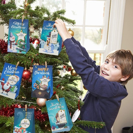 Idealnie nadają się do napełniania – 24 piękne Boże Narodzenie papier typu kraft bardzo dobrze nadają się do wypełniania wielu małych i średnich prezentów takich jak słodycze, czekolady, ciasteczka, małe zabawki, biżuteria itd. Te torebki na prezenty DIY mogą być używane na wiele okazji, takich jak święta Bożego Narodzenia