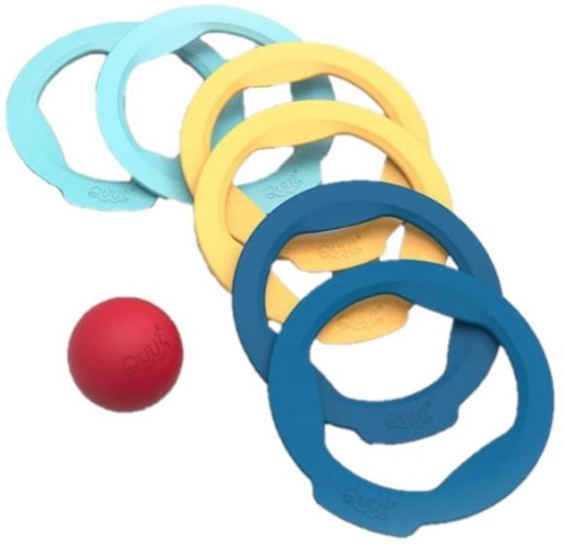 Gra Ringo doskonale łączy się z innymi zabawkami marki Quut, np. łopatkami wielofunkcyjnymi Triplet i Cuppi.
