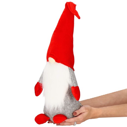 Uderzająca jest precyzja i dbałość, z jaką wykonany został nasz świąteczny kolega-krasnal o ujmującej powierzchowności. Każdy element dopełnia charakterystykę tego jowialnego, poczciwego gnoma: wysoka, miła w dotyku czapeczka, gęsta broda, i okrągły nochal, Stabilna podstawa jest gwarancją, że skrzat będzie nieruchomo siedział i nie ucieknie z wybranego dla niego miejsca