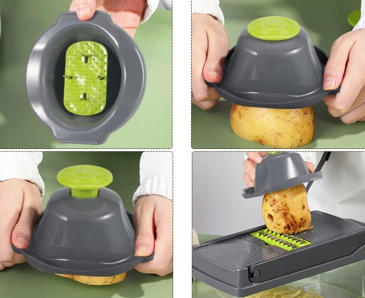 Nasza funkcjonalna krajalnica do warzyw i owoców pozwoli Ci przyrządzać różne potrawy bez czasochłonnego ich obierania i krojenia tradycyjnymi przyrządami kuchennymi. Jej ostrza nie tępią się w takim stopniu jak noże, dlatego też nie ma potrzeby ich ostrzenia przed każdym użyciem.