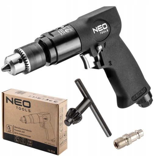 Wiertarka pneumatyczna 10 mm NEO (nr ref. 14-514) charakteryzuje się wysoką trwałością i niezawodnością. Maksymalna średnica wiertła 10 mm. Posiada przełącznik obrotów prawo/lewo, maksymalne obroty 1800 obr./min. Zgodność z europejskimi standardami bezpieczeństwa zapewnia certyfikat CE. Marka NEO spełnia oczekiwania profesjonalistów.