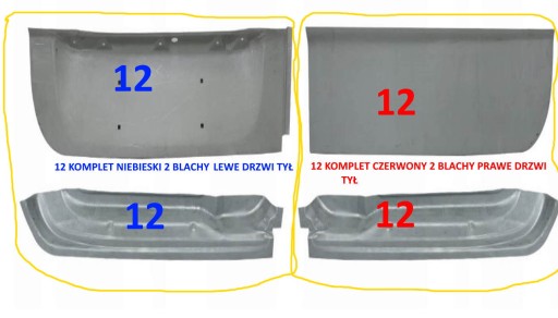 - nr 12 CZERWONY PRAWY KOMPLET 2 BLACHY DRZWI TYŁ ZEWN + WEWNE