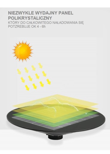 Ekologiczne panele słoneczne doładowują za darmo wbudowaną baterię w ciągu dnia, aby światło włączało się automatycznie po zmierzchu.