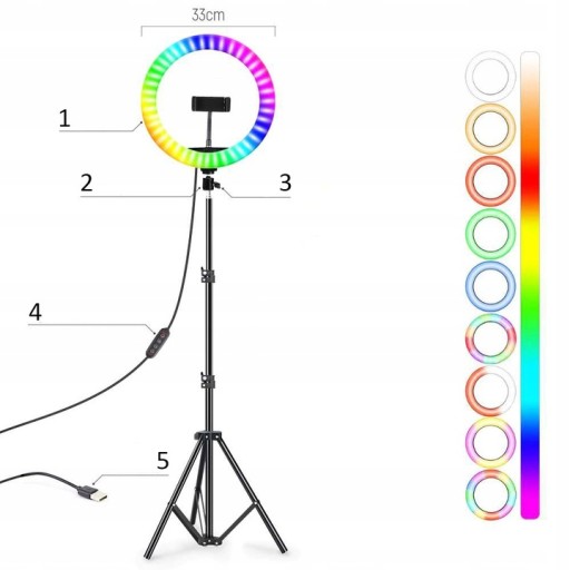- Lampa pierścieniowa z regulacją koloru świecenia