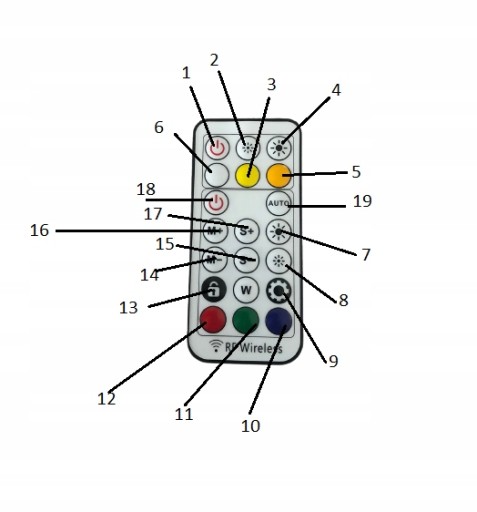Za pomocą przycisków "+" oraz "-" na pilocie można regulować natężenie światła. Regulacja jest możliwa od bardzo przygaszonego światło o wartości 10% maksymalnej mocy, aż do 100%. Regulacja umożliwia przeskakiwanie co 10%, czyli 10%>20%>30%>itp..