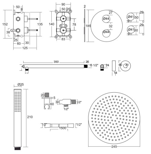 - 2-funkcyjna podtynkowa w zestawie (przełączanie między słuchawką a deszczownicą)