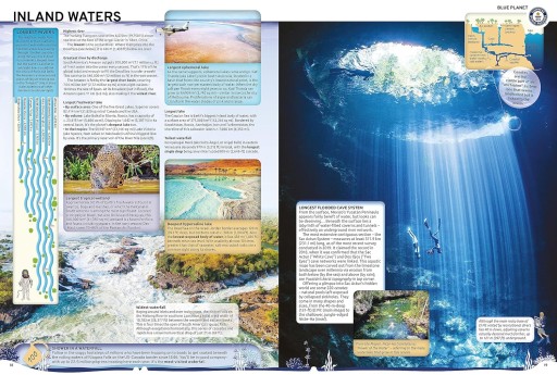 Dive into thousands of new and classic records, with topics as diverse as rollercoasters, robots, movie props and gaming. The theme of this year's edition is the BLUE PLANET, so take the plunge with our opening chapters, as we encounter bizarre and deadly sea creatures, swim through the largest coral reefs and explore the seabed for shipwrecks. Rod Hunt's fourth and final cover in his collectable series also conjures an aquatic wonderland packed with record holders - how many can you spot?