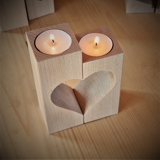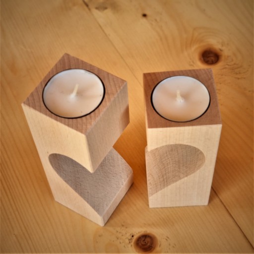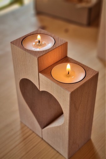 Набор деревянных подсвечников, подарок-сердце на День святого Валентина.