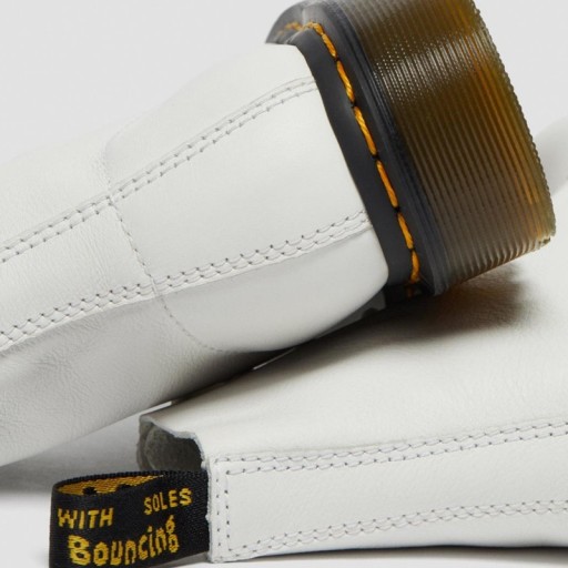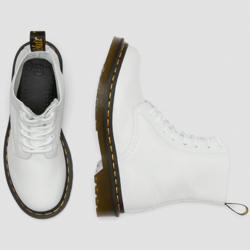 Klasyczny, ośmiodziurkowy model typu #PASCAL z kolekcji obuwia Dr. Martens. Wykonany z najwyższej jakości, mięciutkiej, naturalnej skóry licowej w kolorze białym. Podeszwa doszywana do wierzchu buta przy pomocy słynnej, żółtej nici (technologia Goodyear Welted). W podeszwie umieszczona charakterystyczna dla martensów tzw. poduszka powietrzna.