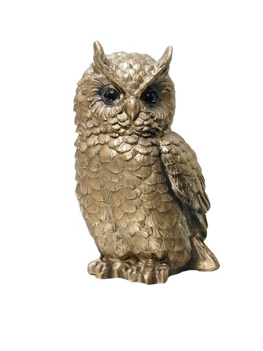 Zapraszam do zakupu wspaniałej figurki SOWY, symbolu mądrości. Figurka jest wykonana z materiału o nazwie Poliresin , to konglomerat żywicy i mączki alabastrowej, metalizowany.