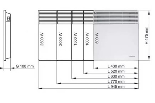 Posiadają przełącznik włącz/wyłącz. Elementem grzejnym jest grzałka grzebieniowa, a nad właściwą pracą urządzenia czuwa termostat umożliwiający ustawienie ośmiu różnych nastaw temperatury oraz posiadający funkcję zabezpieczającą grzejnik przed przemarznięciem.