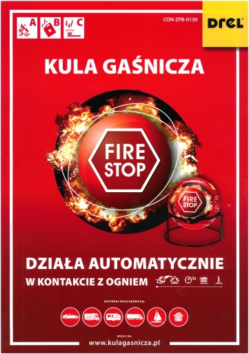 Produkt zawierający czujnik ognia - kulę można zamocować na stałe lub wrzucić bezpośrednio w obszar pożaru. Produkt eksploduje automatycznie w czasie od 3-5 sekund po kontakcie z ogniem. Po eksplozji powstaje automatyczna reakcja, która zdusza ogień gwałtownie i efektywnie.