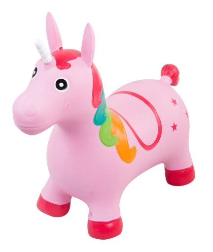 Skoczek gumowy dla dzieci JEDNOROŻEC 60 cm różowy do skakania z pompką