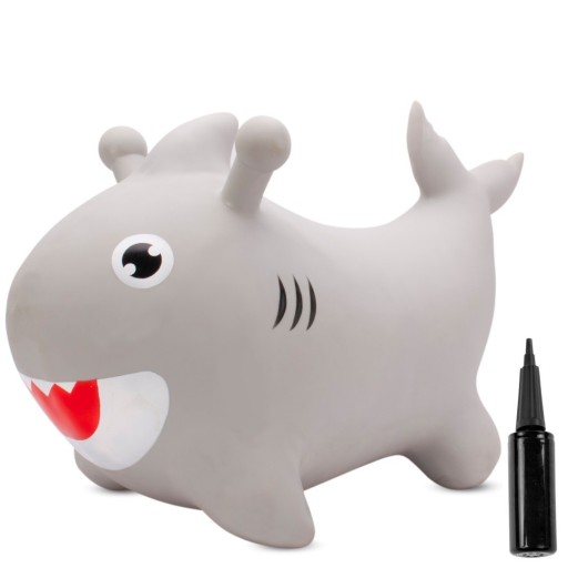 Skoczek gumowy dla dzieci REKIN BABY SHARK 62 cm szary do skakania z pompką