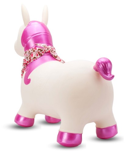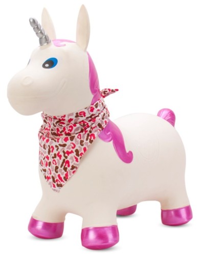 Skoczek gumowy dla dzieci JEDNOROŻEC 60 cm biały z błyszczącym rogiem, z ba