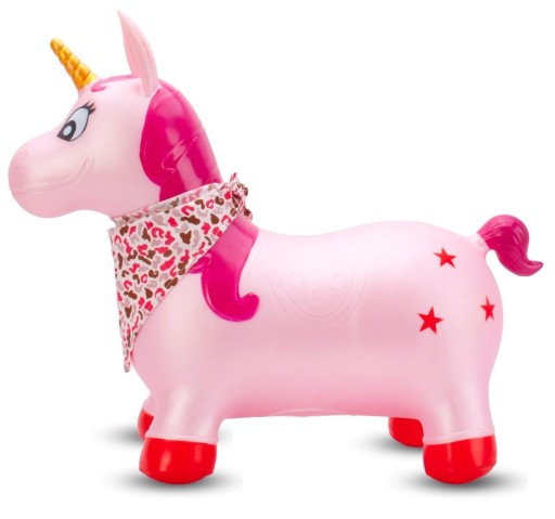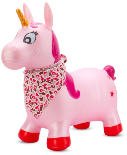 Skoczek gumowy dla dzieci JEDNOROŻEC 60 cm różowy perłowy z bandaną do skak
