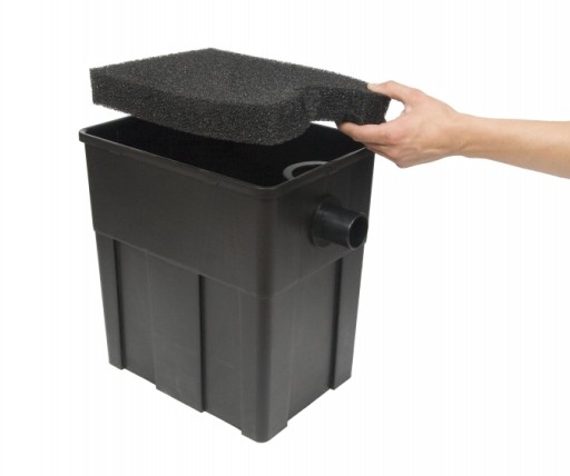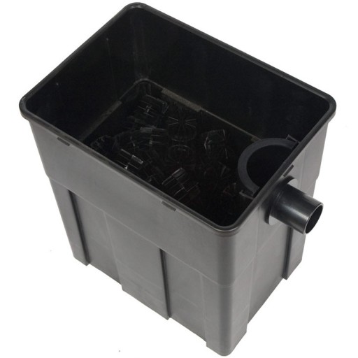 Filtr posiada dużą komorę filtracyjną. Znajdziemy w niej gotowe do użycia wkłady filtracyjne, które zadbają o kompleksowe oczyszczanie wody. Dwa rodzaje gąbki zapewniają filtrację mechaniczną. Odpowiedzialne są za zatrzymywanie wszystkich zanieczyszczeń stałych, takich jak fragmenty obumarłych roślin, odchody ryb, czy resztki niezjedzonego pokarmu. Dodatkow zestaw zawiera bioballe, które stanowią świetne siedlisko dla pożytecznych bakterii nitryfikacyjnych. Ten wkład biologiczny pozwala usunąć z wody szkodliwe związki azotu, będącego przyczyną rozwoju glonów w oczku wodnym.