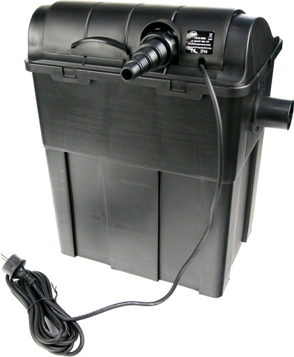 Efektywność działania urządzenia wzmacnia wbudowana lampa UVC o mocy 11 W. O jej działaniu informuje nas wskaźnik. Woda przepływając przez sterylizator wystawiona jest na działanie promieniowania UV, które jest zabójcze dla glonów, groźnych mikroorganizmów i chorobotwórczych patogenów. Dzięki niemu pozbędziesz się zakwitów wody. Promieniowanie ultrafioletowe działa wyłącznie w miejscu bezpośredniego kontaktu z wodą. Dlatego nie wpływa niekorzystnie na ryby zamieszkałe w oczku wodnym, czy żyjące wewnątrz filtra pożyteczne bakterie. Stosowanie lampy UV również nie wpływa na parametry i skład chemiczny wody.