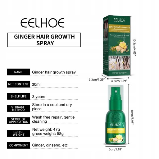 Pakiet zawiera:1*30ml imbirowy spray na porost włosów