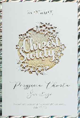 Kartka na Chrzest pięknie zdobiona ażurowa LC20C