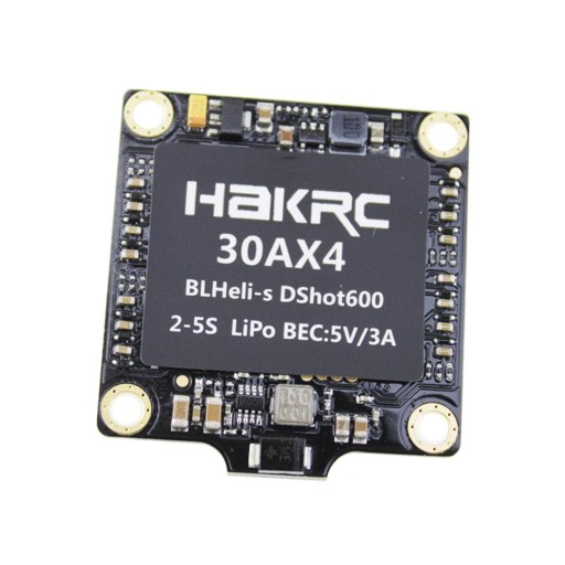 Specyfikacja: Materiał: metal Prąd: . Prąd szczytowy: 4x35A (30A) Napięcie: 2-5 S. Oprogramowanie układowe: Blheli_S Wsparcie: DShot150 / 300/600 i Oneshot125 / 42 : 9,6 g Rozmiar: 39 mm ( ) / 1,54 x 1,42 cala Instalowanie otworu: 30 x 30 mm / 1,18 x 1,18 cala