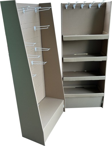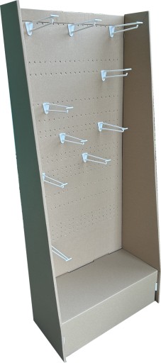 Jesteśmy producentem opakowań i artykułów reklamowych z tektur. W naszej ofercie następny regał -stand tekturowy. Model INPO 017. Podstawa 60x30cm, wys.1400cm, bardzo solidny i stabilny, wykonany z tektury 5 warstwowej FalaEB koloru naturalnego. Podstawa-cokół mocowany w boczne ściani i dodatkowo wpinany w ściankę tylną. Plecy perforowane, przystosowane do montażu haczyków o szerokości 25 mm. Regał również przygotowany pod grafikę. Kaszerujemy ( oklejamy wydrukami offsetowymi) wg grafiki klienta. Możemy również na zamówienie wykonać regał z tektury kolor naturalny lub biały.Cena obejmuje model standu-regału jak na zdjęciu z tektury brązowej, bez haczyków. Cena brutto. Możemy również wykonać dowolny rozmiar regału dla potrzeb klienta, wiąże się to jednak z kosztami projektu i wykrojnika. Dostawa max 2 szt regałów na płasko w jednej przesyłce. Nie wymaga sklejania. Bardzo estetyczny i nowoczesny design.
