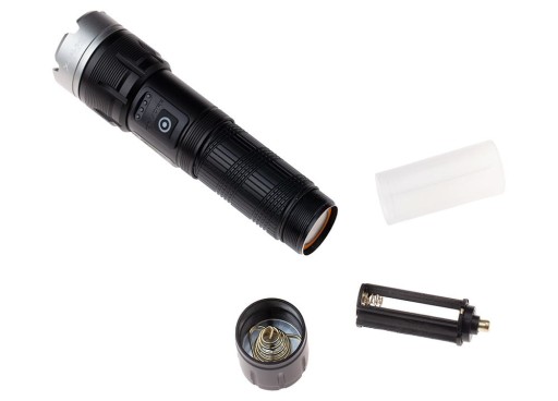 ✔️Latarka zasilana jest na akumulator litowo-jonowy 26650 3,7V-4,2V (w zestawie) lub 3x bateria AAA.