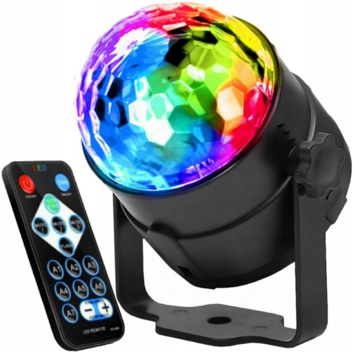 Kula disco projektor LED RGB z czujnikiem dźwięku i pilotem!
