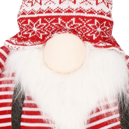 Uderzająca jest precyzja i dbałość, z jaką wykonany został nasz świąteczny kolega-krasnal o ujmującej powierzchowności. Każdy element dopełnia charakterystykę tego jowialnego, poczciwego gnoma: wysoka, miła w dotyku czapeczka, gęsta broda, i okrągły nochal, Stabilna podstawa jest gwarancją, że skrzat będzie nieruchomo siedział i nie ucieknie z wybranego dla niego miejsca