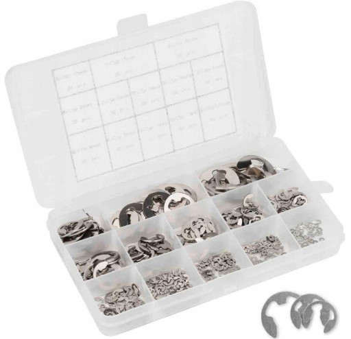 1x400 szt. Zestaw asortymentowy pierścieni zabezpieczających E-Clip