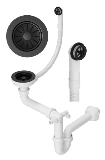 SYFON 1KOM G MANUALNY JEDNOKOMOROWY DO ZLEWU CZARNY PRZYŚCIENNY DO KUCHNI