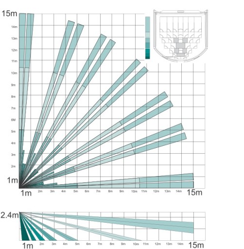 System optyki 3D optyka podzielona została na 60 stref, co gwarantuje dokładne pokrycie całego chronionego obszaru oraz ochronę strefy podejścia (obszaru pod detektorem),